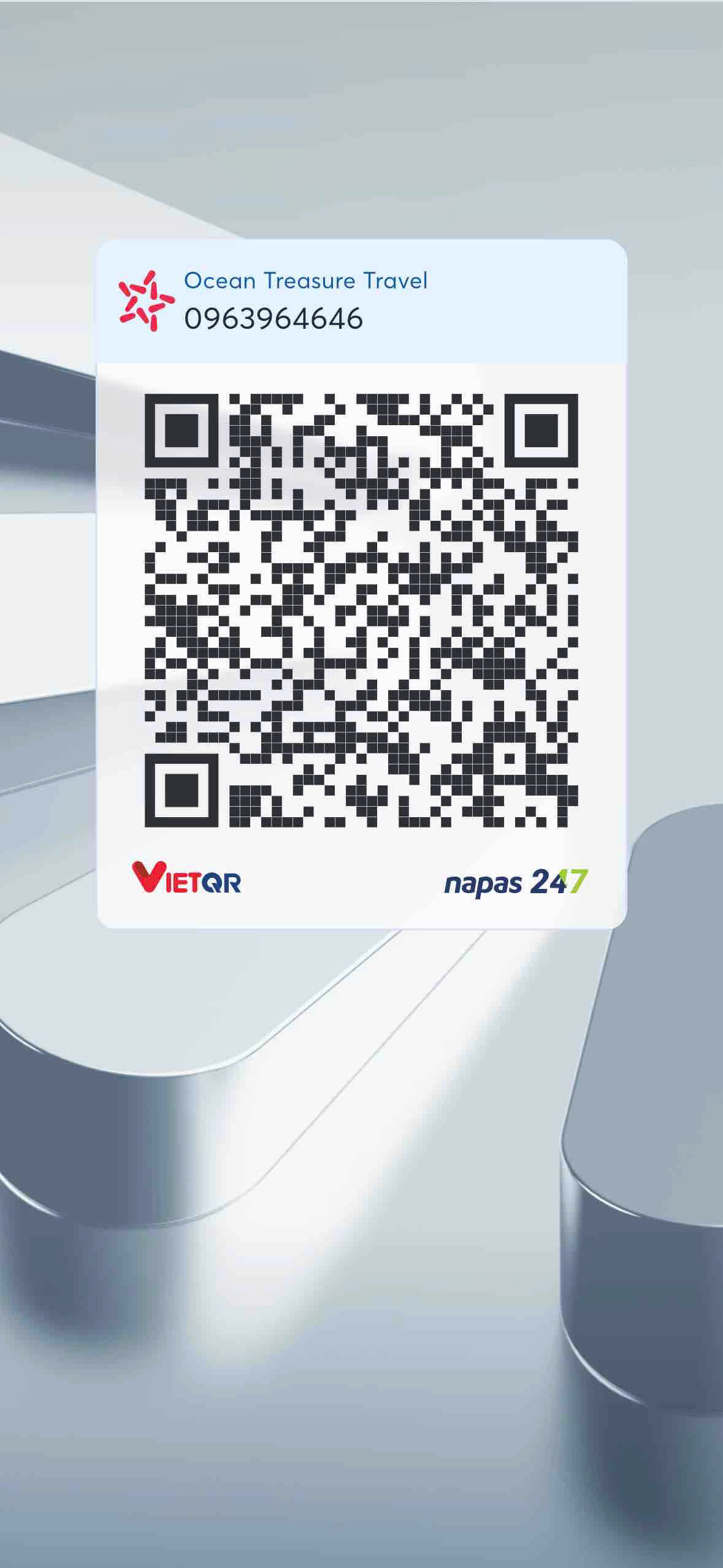 Ocean Treasure Travel (OT Travel) có thể cung cấp QR chuyển khoản (VietQR/NAPAS) tương ứng với tài khoản công ty (khuyến nghị) hoặc tài khoản được OT chỉ định.