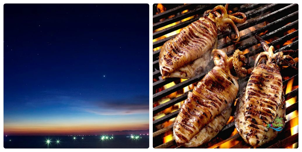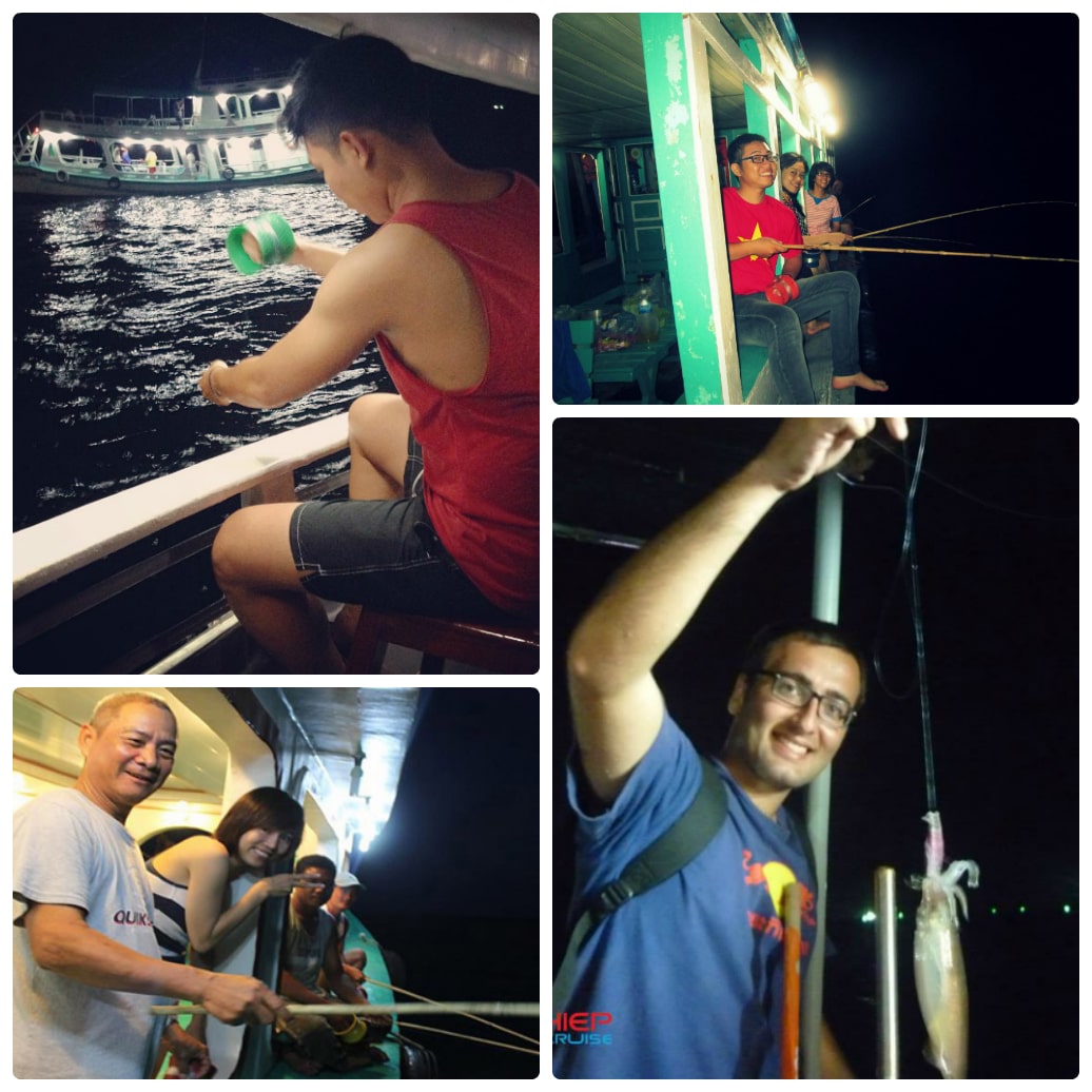 - – Trong khi thuyền đang chạy, quý khách sẽ được ngắm mặt trời lặn. Khi đến khu vực câu mực, đèn sẽ được bật sáng, quý khách nhận dụng cụ câu mực. Hướng dẫn viên sẽ hướng dẫn cho quý khách cách câu mực đêm và sau đấy là màn trổ tài của các bạn để bắt được những con mực to nhất và được cảm nhận lý thú tiêu khiển khi tự tay mình câu được.